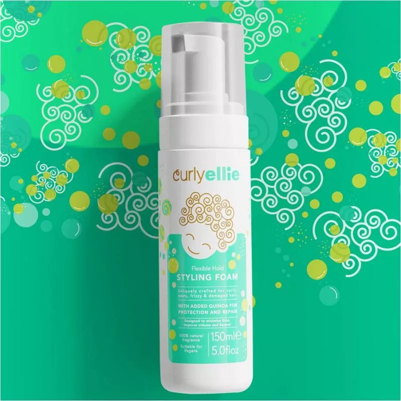 CurlyEllie’s Flexible Hold Styling Foam is the ultimate styling solution for curly hair of all types—whether loose, tight, coily, or wavy. This lightweight, hydrating foam defines curls, controls frizz, and locks in moisture without leaving any crunch or stickiness. It’s formulated with a powerful blend of natural ingredients designed to enhance the natural curl pattern, leaving hair bouncy, shiny, and full of life. • Frizz Control & Shine Boost: Linseed and chia polysaccharides fight frizz while enhancing shine, leaving curls radiant and defined. • Hydration & Strength: Betaine from upcycled sugar beet hydrates, protects, and strengthens hair, locking in moisture and boosting overall hair health. • Soft, Touchable Curls: Hydrolyzed pea protein provides volume and softness, while delivering antioxidant benefits for hydrated, conditioned hair. • Long-Lasting Curl Definition: Hydrolyzed quinoa strengthens and repairs curls, making them soft and manageable with long-lasting hold. • Natural & Vegan-Friendly: Infused with plant-based ingredients, this formula is ideal for sensitive skin and vegans, promoting healthy, bouncy curls without any crunch or stickiness.