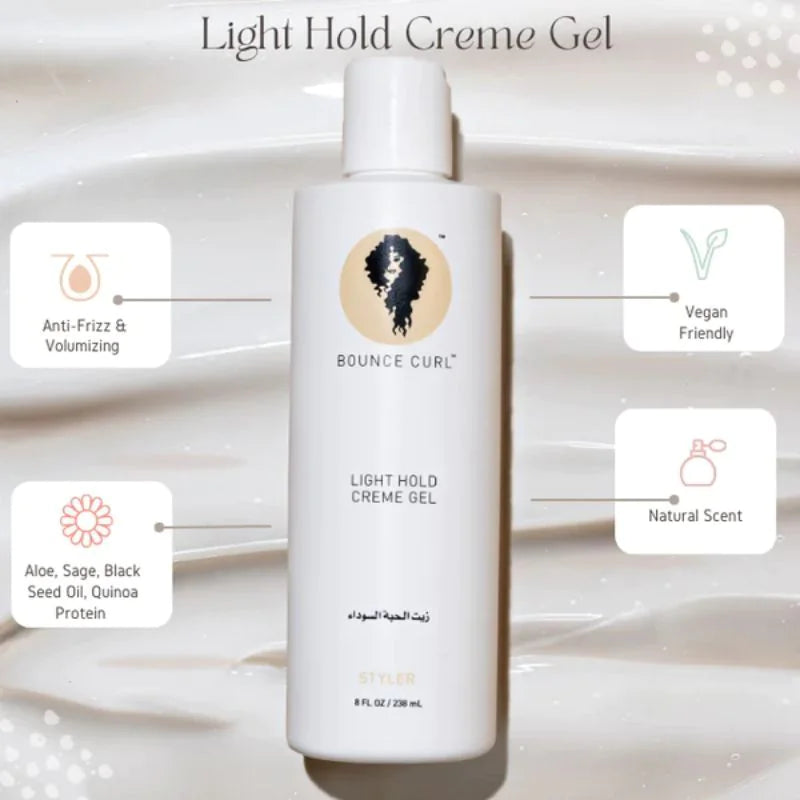 THIN HAIR: For thin hair, use a small amount of gel in wet hair on different sections of your hair. Scrunch your hair up and down. Use the Bounce Curl microfiber towel to scrunch excess water. Lastly, air dry or diffuse. If you have "DRY HAIR", please use a leave in or cream before you apply Bounce curl light creme gel.